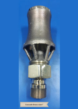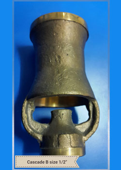 One of the classics in the fountain industry, the cascade jet is used in a variety of fountains. It comes in a wide range of sizes and shapes and can produce water profiles ranging from bubbling cascades to shooting jets. The cascades made by these nozzles are often compared to the flames of a candle.