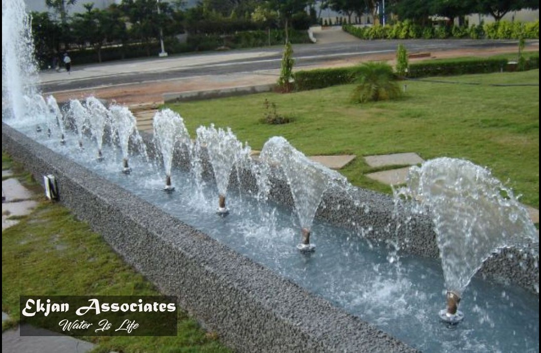 Fan jet fountain nozzles from Ekjan Associates—precision-engineered SS316 and bronze components creating the graceful semicircular displays that define memorable public water features.