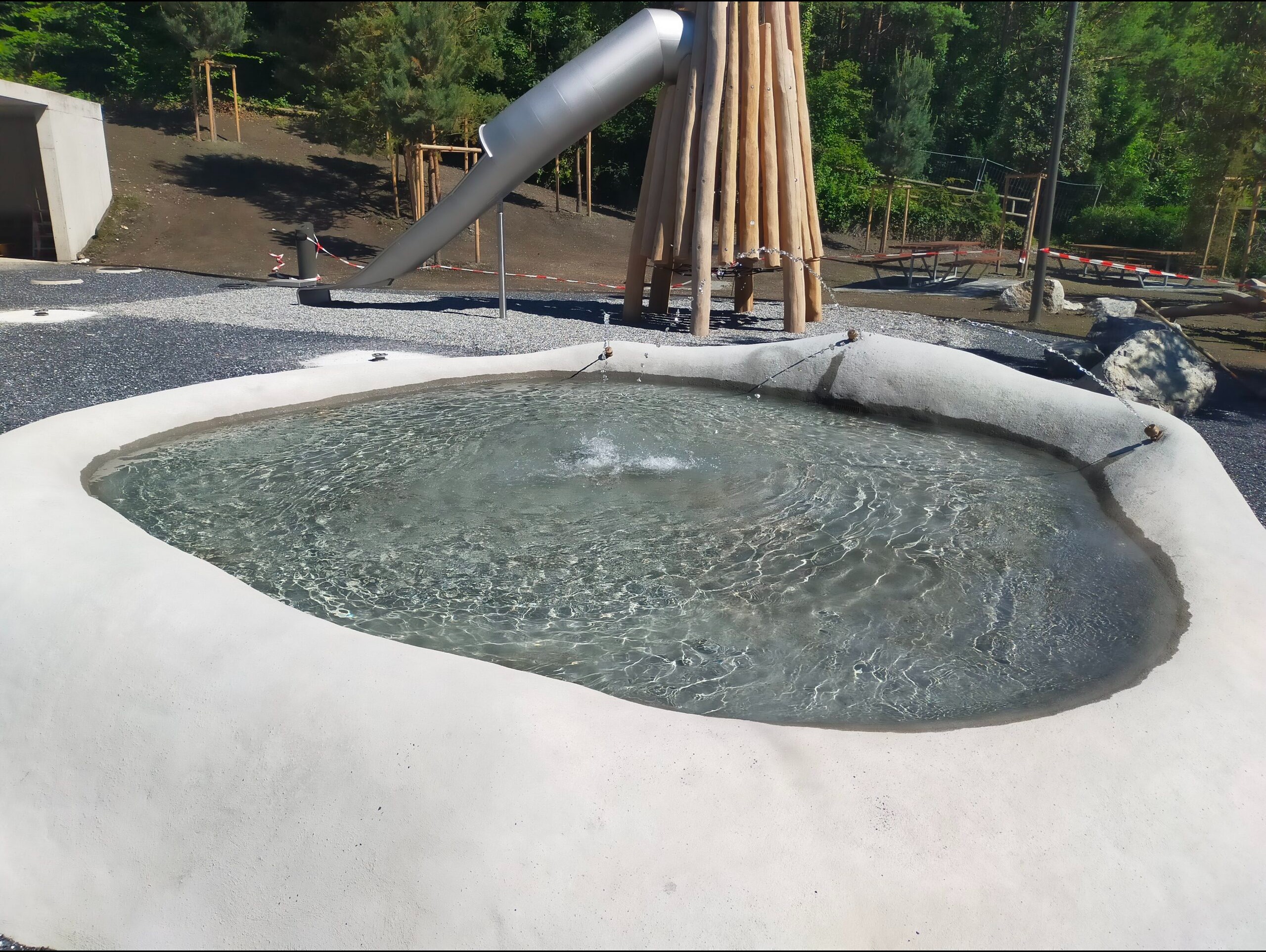 The innovative water feature at Family Park Waldhotel Vaduz, created by Aquatransform, exemplifies contemporary approaches to public water features that prioritize playful interaction over formal display. This organic, naturalistic basin with its irregular sculptural edges and playful water cannon demonstrates how modern fountain design moves beyond traditional aesthetics to create engaging, multi-functional installations that delight children while maintaining artistic integrity.