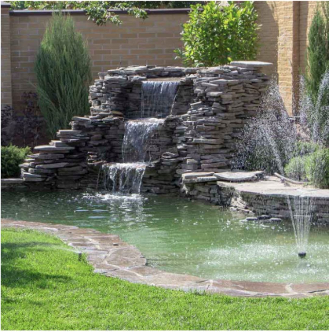 Stacked slate waterfalls represent contemporary naturalism—where architectural form and natural materials unite to create water features that feel both designed and organic.