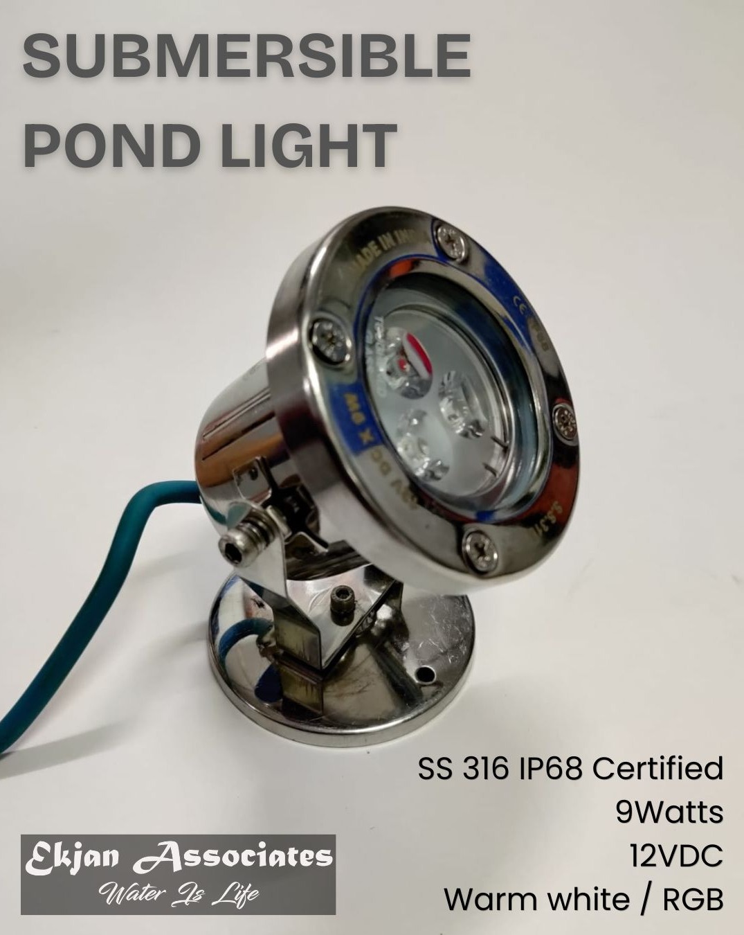 The premium submersible pond light from Ekjan Associates represents professional-grade underwater illumination designed specifically for ornamental ponds, koi installations, and aquatic garden features. With robust SS316 construction, IP68 certification, and versatile lighting options, this 9-watt fixture transforms ponds from daytime features into captivating evening displays revealing aquatic life and water features invisible in darkness.